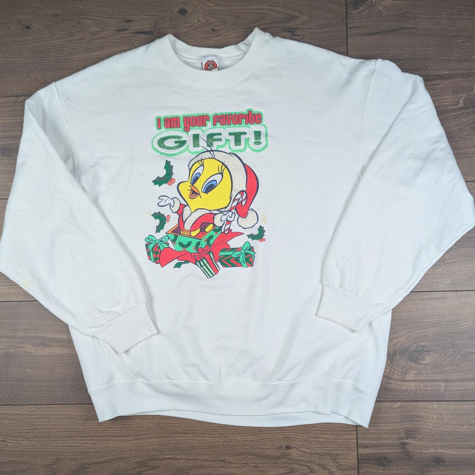 Vintage 00's White Tweety Bird Looney Tunes Christmas Jumper Sweatshirt Size XL